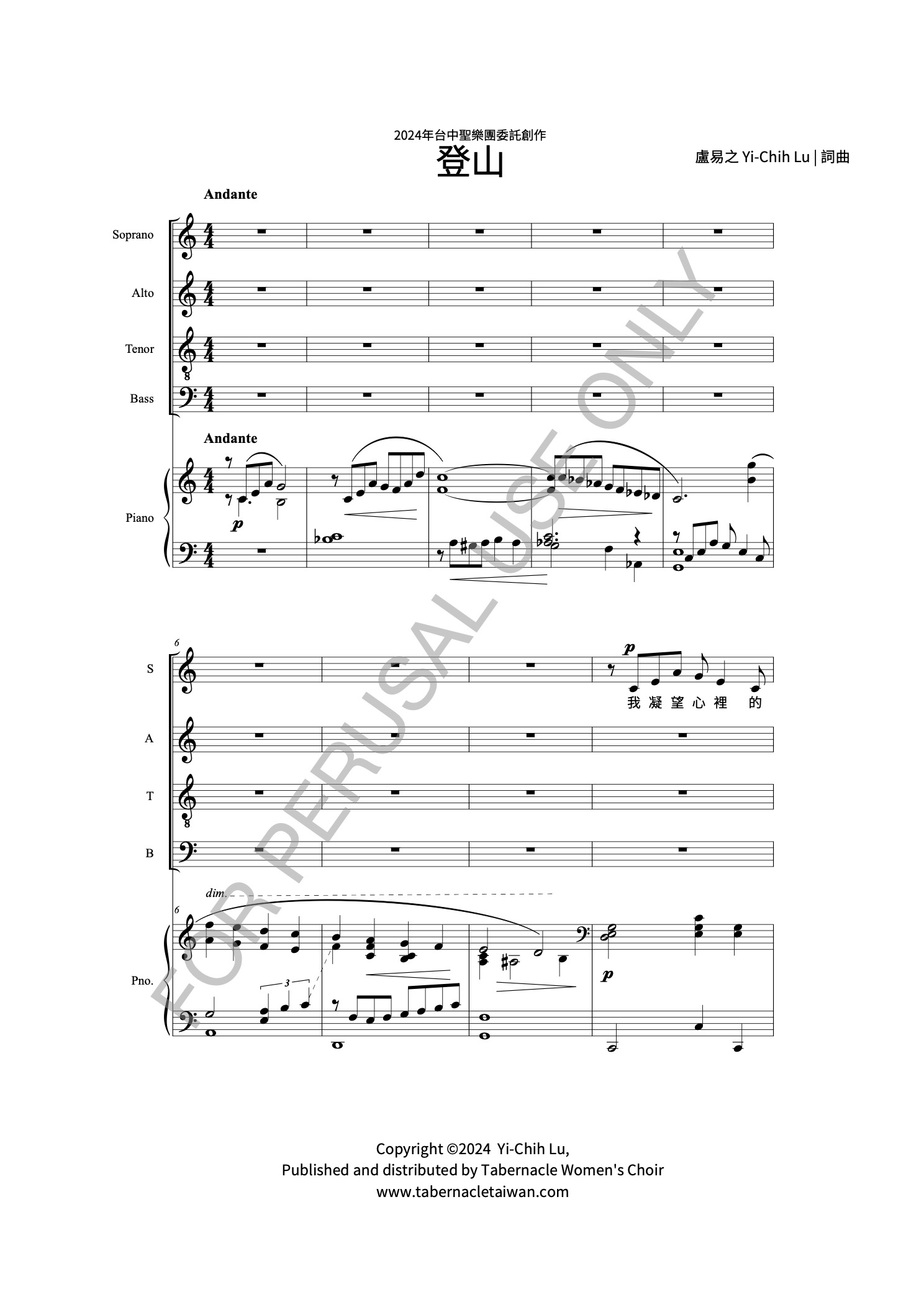 3.以上項目版權屬於作曲家及台中聖樂團,若需教育推廣使用請註明出處;嚴禁更改、二次販售等行為。